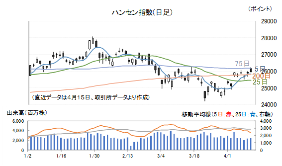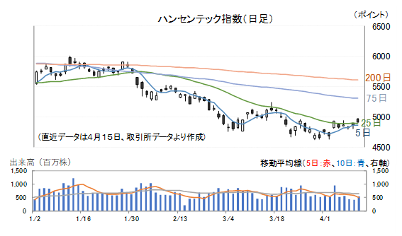 ハンセン指数は4月に入りリバウンド局面が続いています。