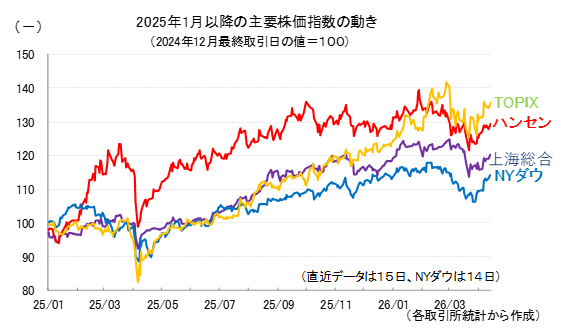 参考として、2025年以降の主要4指数の値動きを示しておきます。