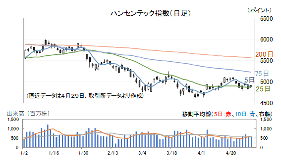 ハンセン指数は4月に入り、しっかりとしたリバウンド局面が続いています。