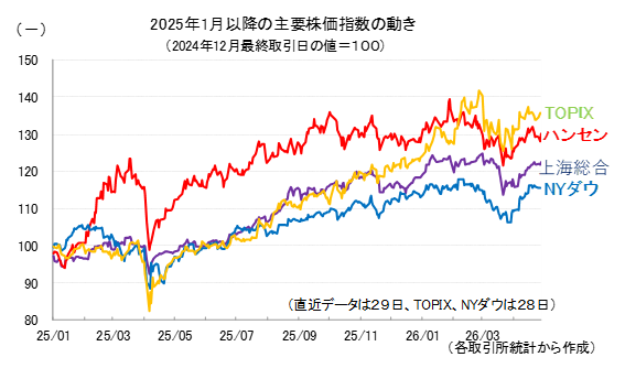 参考として、2025年以降の主要4指数の値動きを示しておきます。