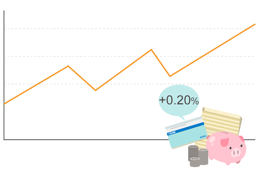 ちなみにメガバンクの預金利率を見ると、普通預金が0.20%です。マイナス金利が導入されていた2016年2月から2024年3月までの利率が0.001%だったことを考えると、まだマシではありますが、それでも0.20%ですから、お話になりません。