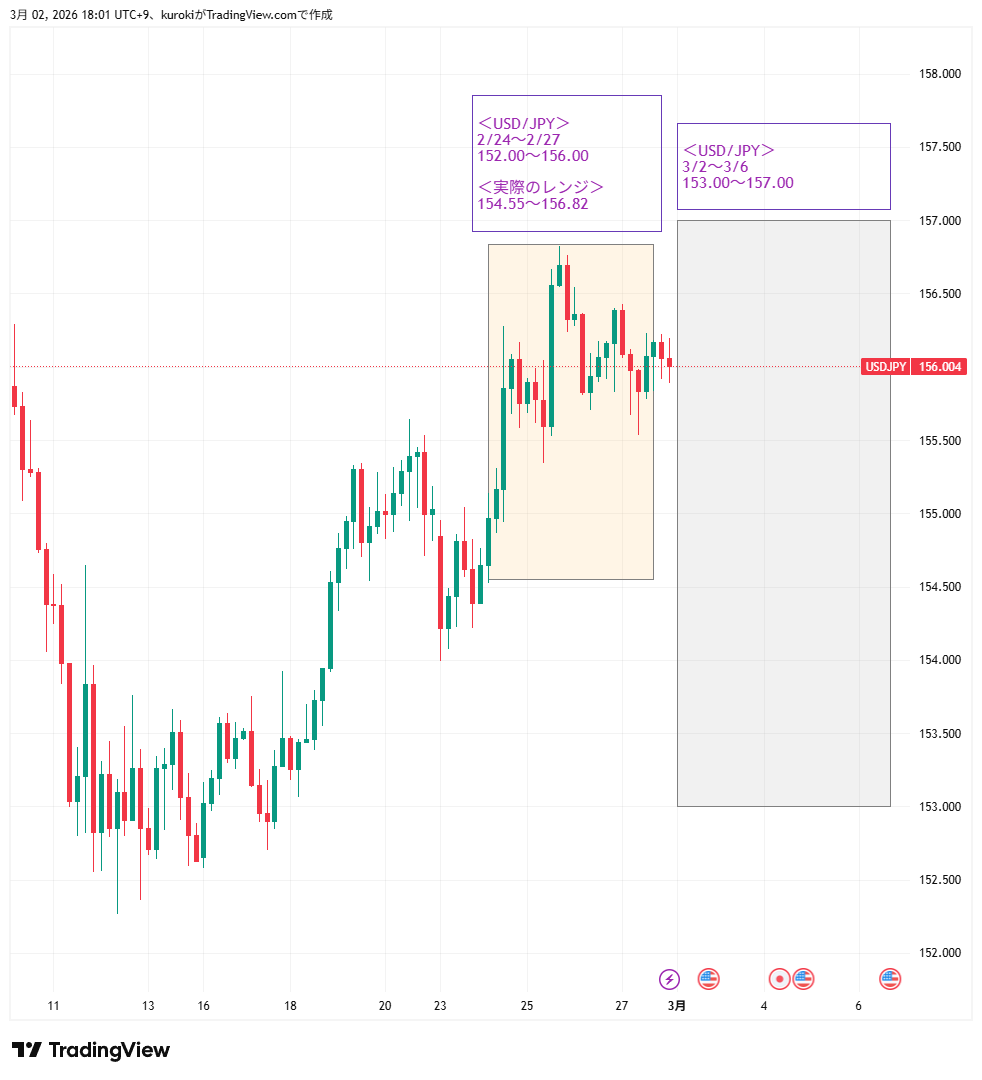 先週のドル円相場は、前週からの投機筋の円の買い戻しの流れを引き継いで154円台で始まったものの、毎日新聞が前週16日の高市総理と日銀植田総裁との会談で高市総理が利上げに対して難色を示したと言う報道と、政府が25日に野口・中川両審議委員の後任として、リフレ派と目される中央大学名誉教授の浅田統一郎氏、青山学院大学教授の佐藤綾野氏を提示した事を受けて日銀の利上げ観測が低下して徐々に円売りが台頭し、週央には高値156.82円を示現したが、市場には我が国財務省による介入警戒感が強くてその後は156円を中心とした神経質な動きを見せることとなった。