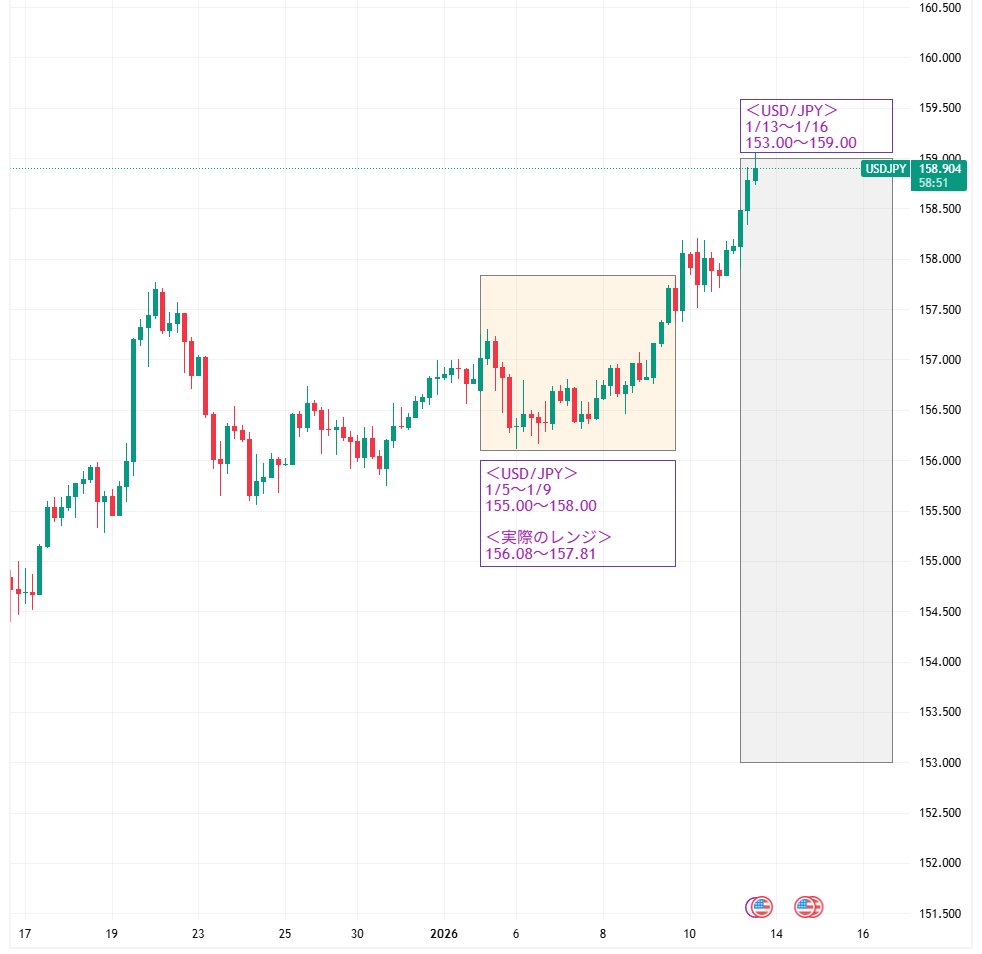 先週のドル円相場は、読売新聞の高市総理の衆議院解散の観測記事により円安が進み、158円台を回復するドル高&円安の展開となった。