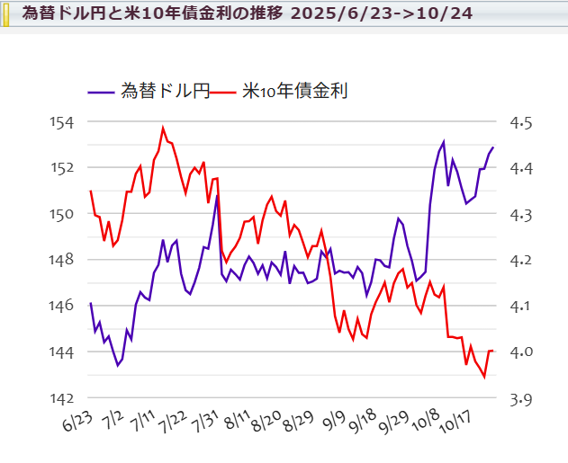 28 日予定の高市・トランプ両氏による初の日米首脳会談では、日米関税合意や米国への5500 億ドル投資、防衛費増大などが確認されると思われるが、トランプ米大統領にとってはドル高・円安は不満の種であることは間違いなく、現在の150円を超える円安への言及にも警戒しておきたい。