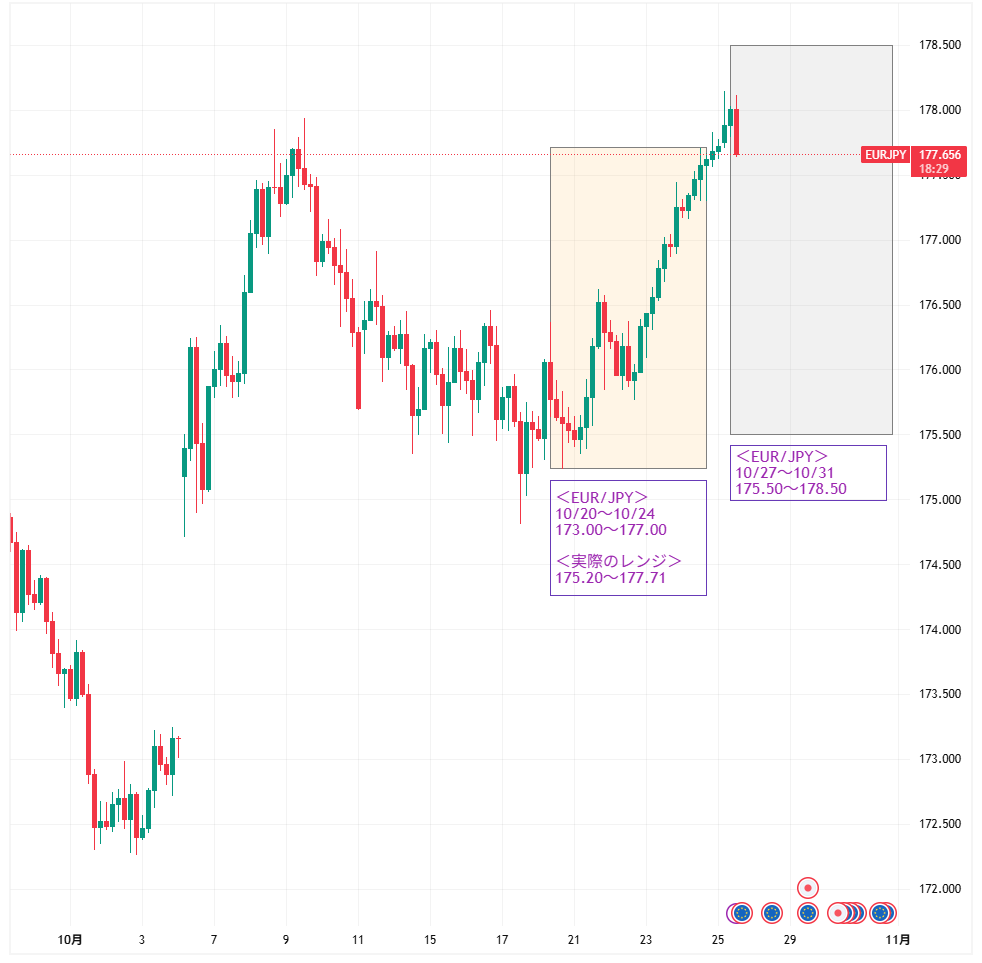 FOMC.後の記者会見でパウエルFRB.議長が市場の期待に反して、これ以上の利下げに慎重な態度を示すか、そして日銀政策決定会合後の記者会見で植田日銀総裁が高市氏の意向に反して利上げに対して一歩踏み込んだ発言をするのかが注目される。
