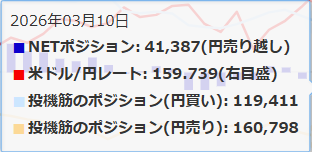 一方、我が国の個人投資家は全く逆の動きを見せて、前週のドルの買い持ち約5億ドルからドテンして8億ドル売り、少額ながら約3億ドルの売り持ちとなった。