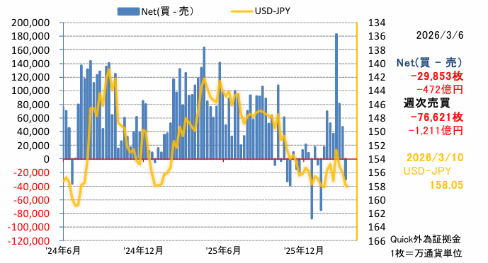 現在の混沌とした状況では、大きなリスクを取る価値は無いと思うが、個人的には早期のイラン戦争終結と介入頼みで依然としてドル円相場は下がるものと期待している。