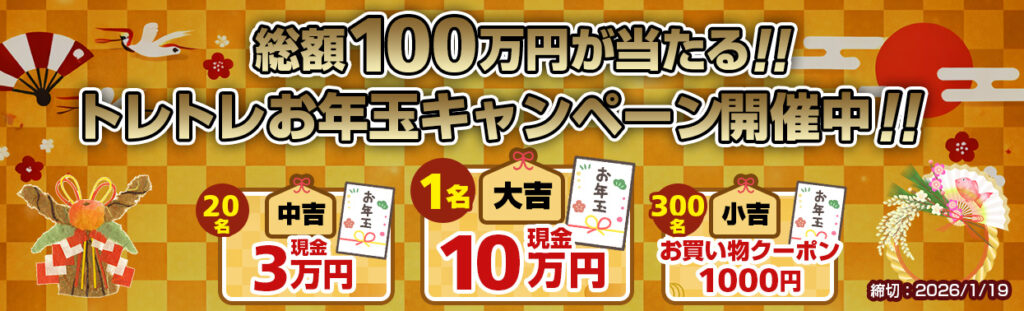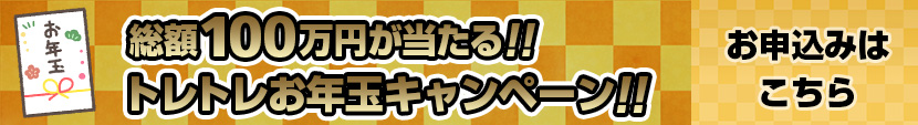 総額100万円が当たる、トレトレお年玉キャンペーンが開催!!
